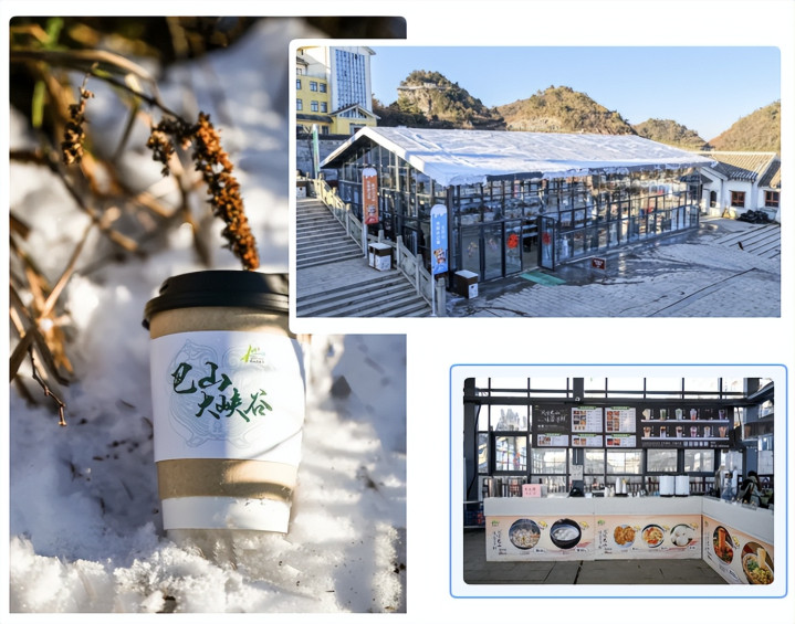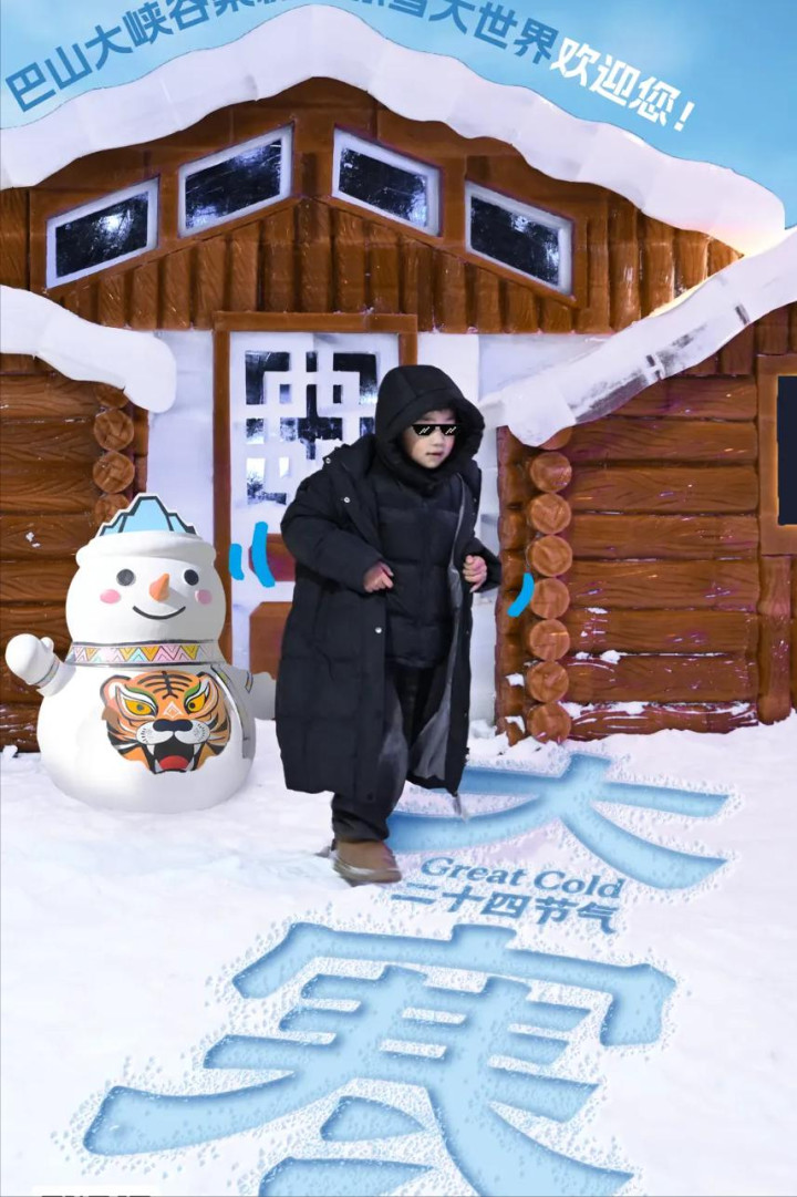 巴山之巅主题冰瀑、巨型巴文化雪人