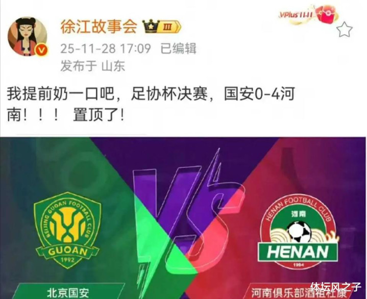 对于本场比赛,名记徐江就在社交媒体上进行了大胆预言,他直言国安必败,国安将以0 - 4的悬殊比分输给河南队,甚至还置顶此预测消息,其实徐江这样预测也是有原因的,在双方最近一次交手中,北京国安就0-2完败河南队,另外国安在亚冠联赛提前一轮被淘汰出局,士气也是遭受重创。因此河南队本场比赛在心理层面上还是要占据一些优势的。