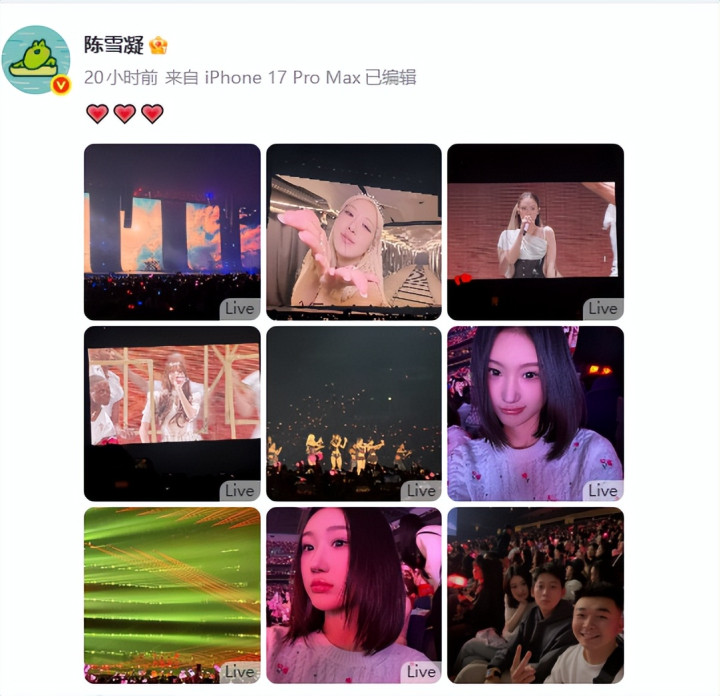 这不,陈雪凝也终于坐不住,直接下场晒出多张照片。