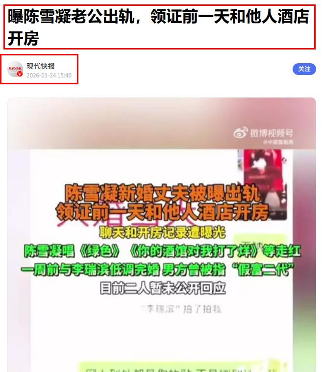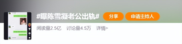本月24日,“曝陈雪凝老公出G”的话题突然在网上盛传。