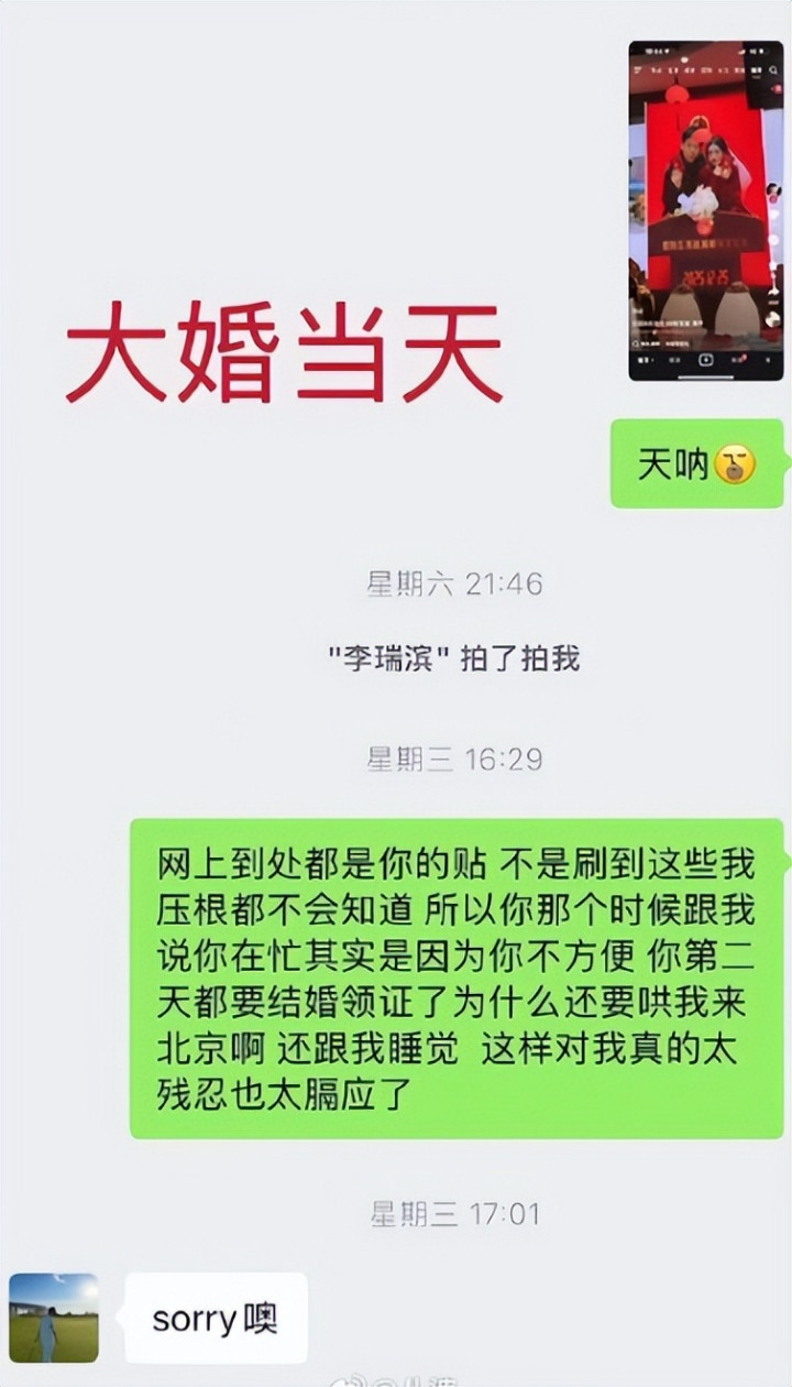 可没想到,这样的甜蜜场面过去才7天,李瑞滨就被曝出这种事。
