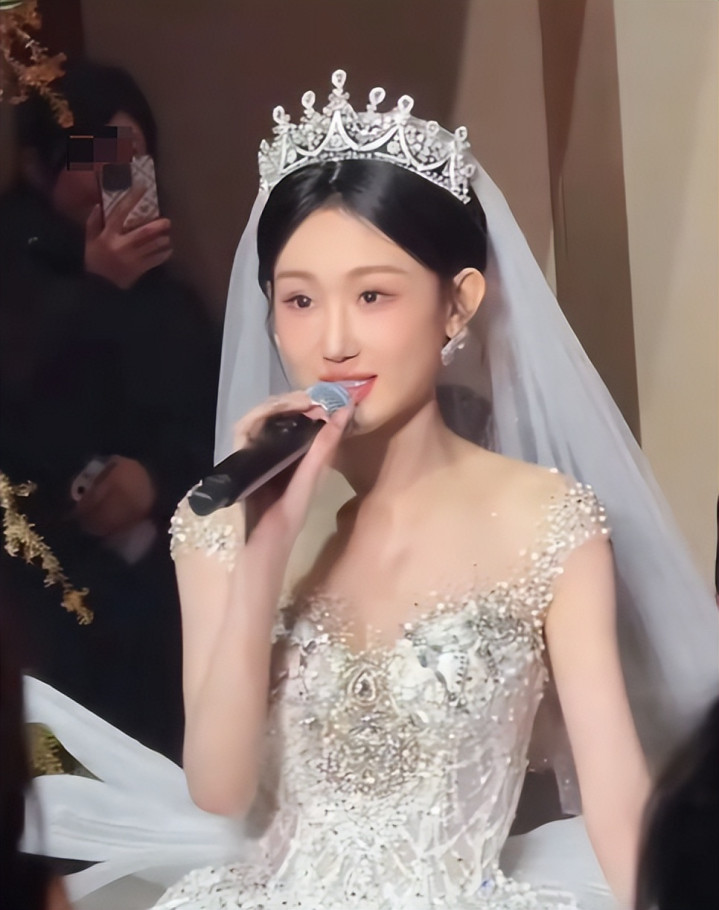 整场婚礼现场异常梦幻,她身穿一身精致的婚纱,脸上满是幸福。